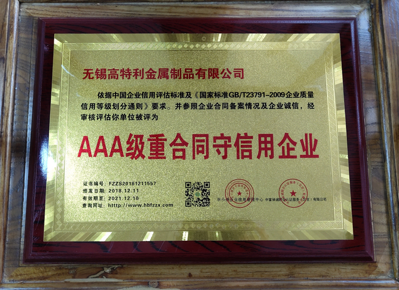 AAA credit rating certificate